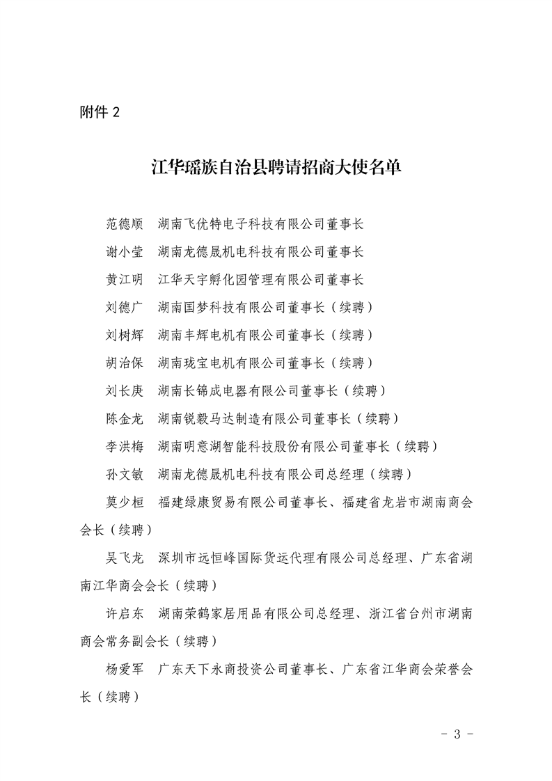 江华瑶族自治县人民政府关于聘请2026年度高质量发展顾问和招商大使的决定