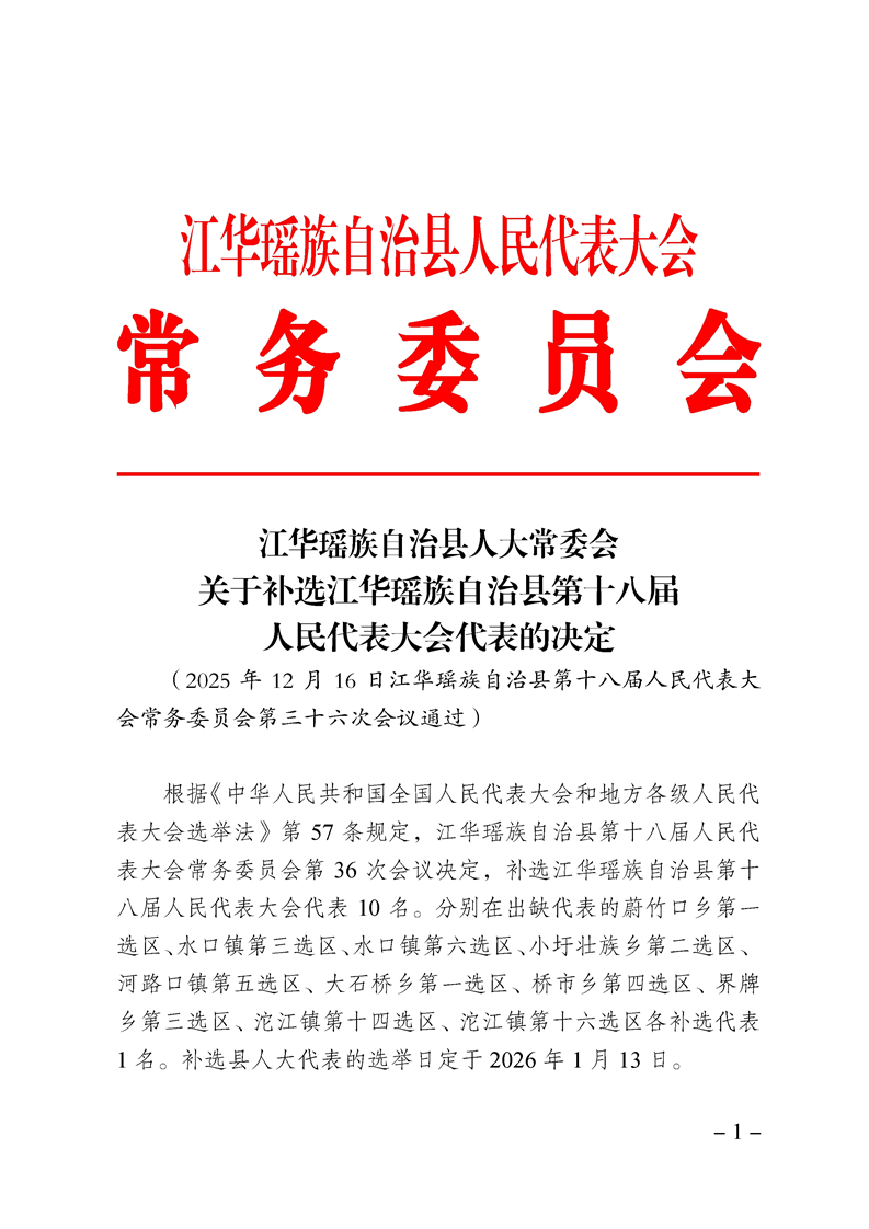 江华瑶族自治县人大常委会关于补选江华瑶族自治县第十八届人民代表大会代表的决定