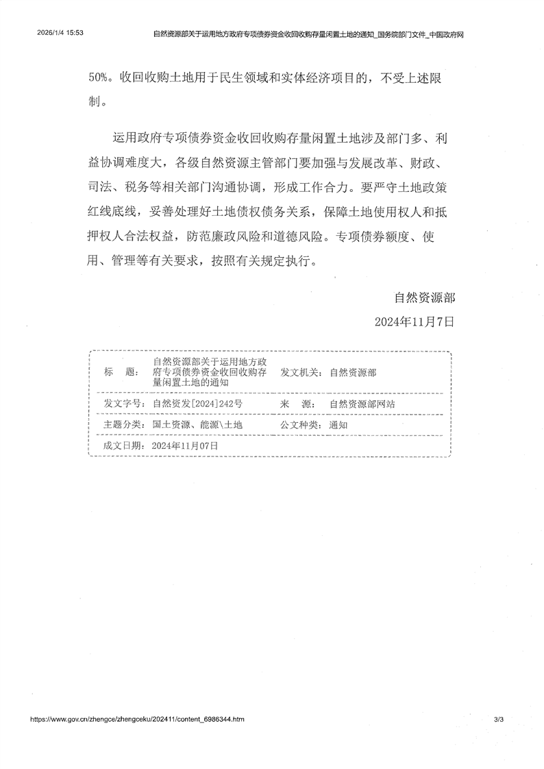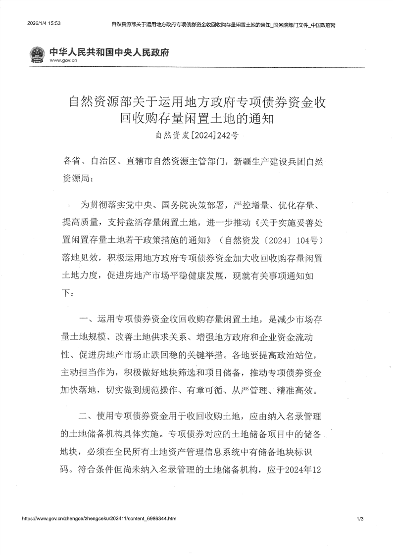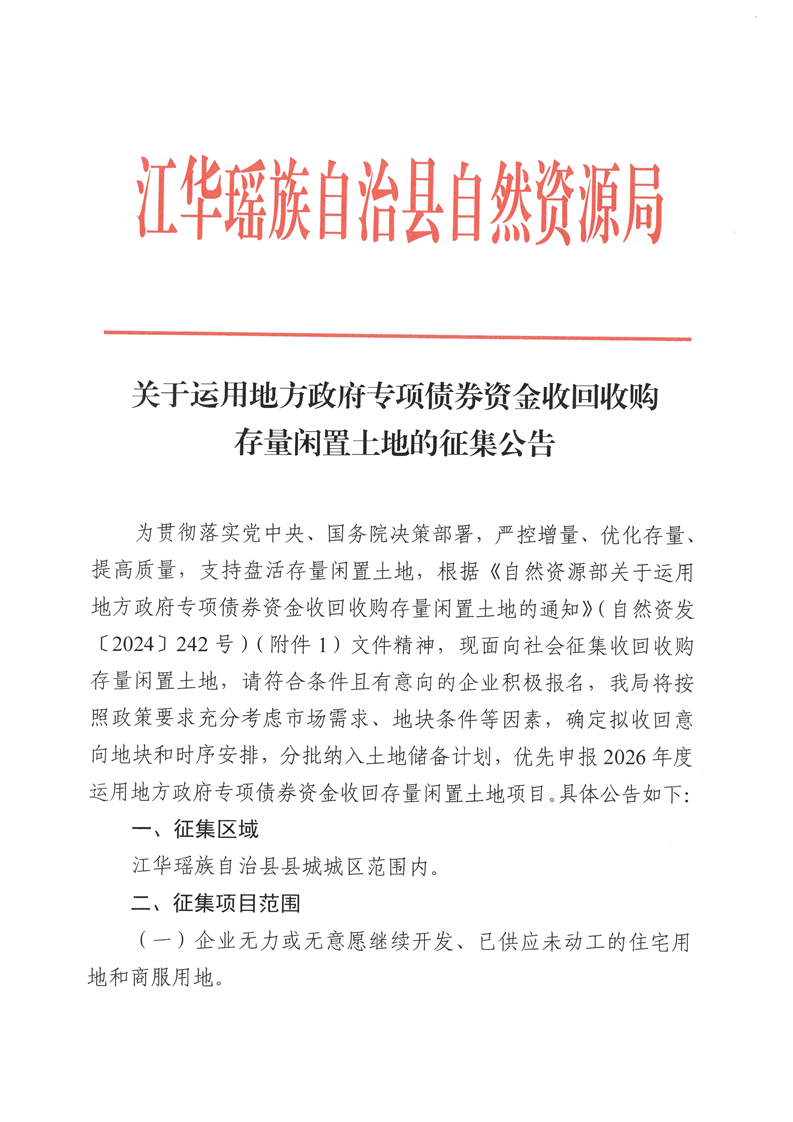 关于运用地方政府专项债券资金收回收购存量闲置土地的征集公告