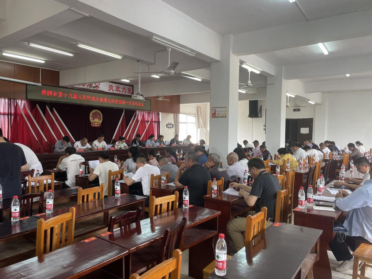 4月30日上午,界牌乡第十九届人民代表大会第九次会议在乡政府五楼会议室隆重召开。会议听取并审议了政府、人大、财政、经济文化和公共事业建设计划等4个工作报告,听取了民生实事项目进展情况汇报。政府工作报告全面回顾了过去一段时间界牌乡在经济发展、社会建设等方面所取得的成绩,同时也明确了下一阶段的工作目标与重点任务。人大工作报告则对乡人大主席团的履职情况进行总结,并对2025年的人大工作作出新的部署。