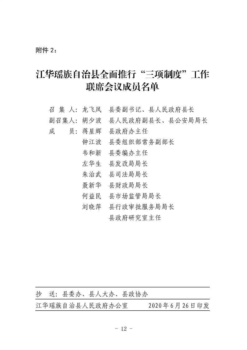 江华瑶族自治县人民政府办公室关于印发《江华瑶族自治县全面推行行政执法公示制度执法全过程记录制度重大执法决定法制审核制度的实施方案》的通知