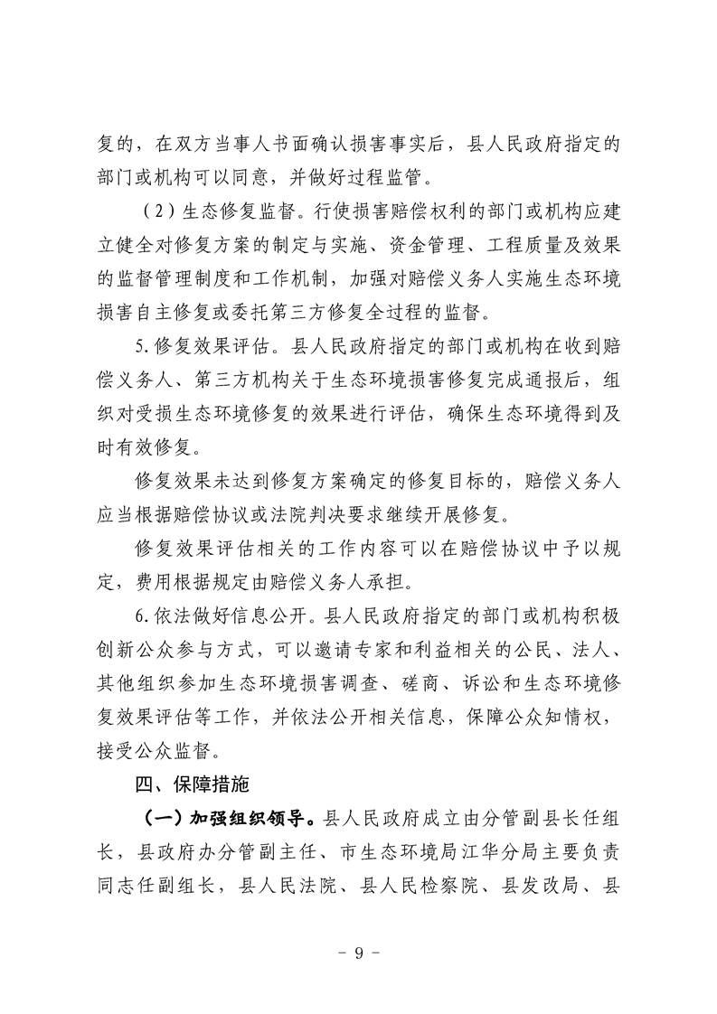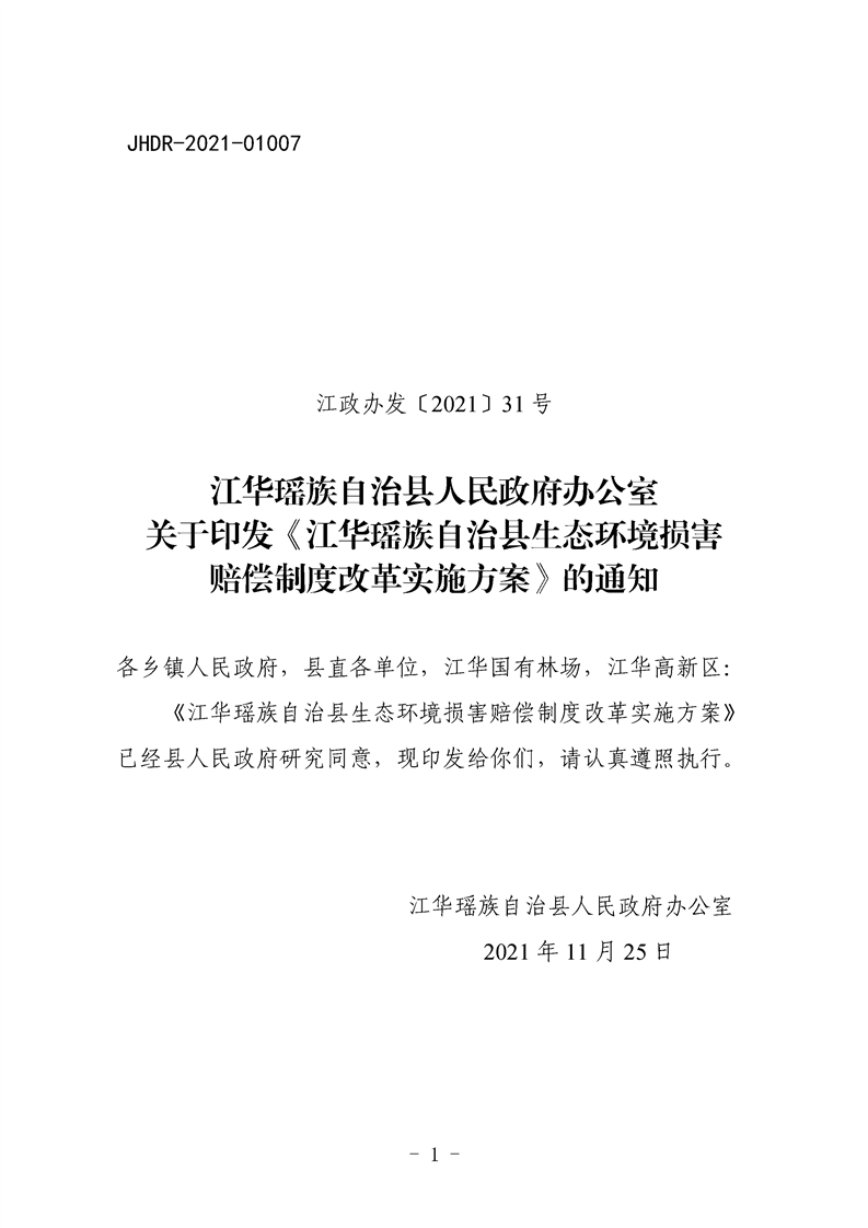 江华瑶族自治县人民政府办公室关于印发《江华瑶族自治县生态环境损害赔偿制度改革实施方案》的通知