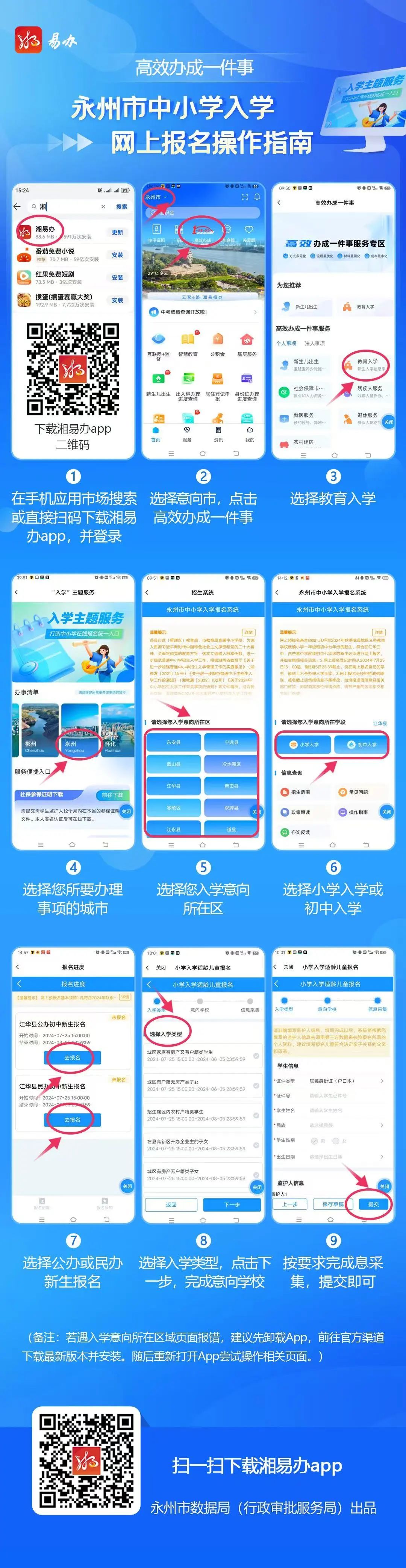 一图读懂:永州市中小学入学网上报名操作指南(湘易办客户端)