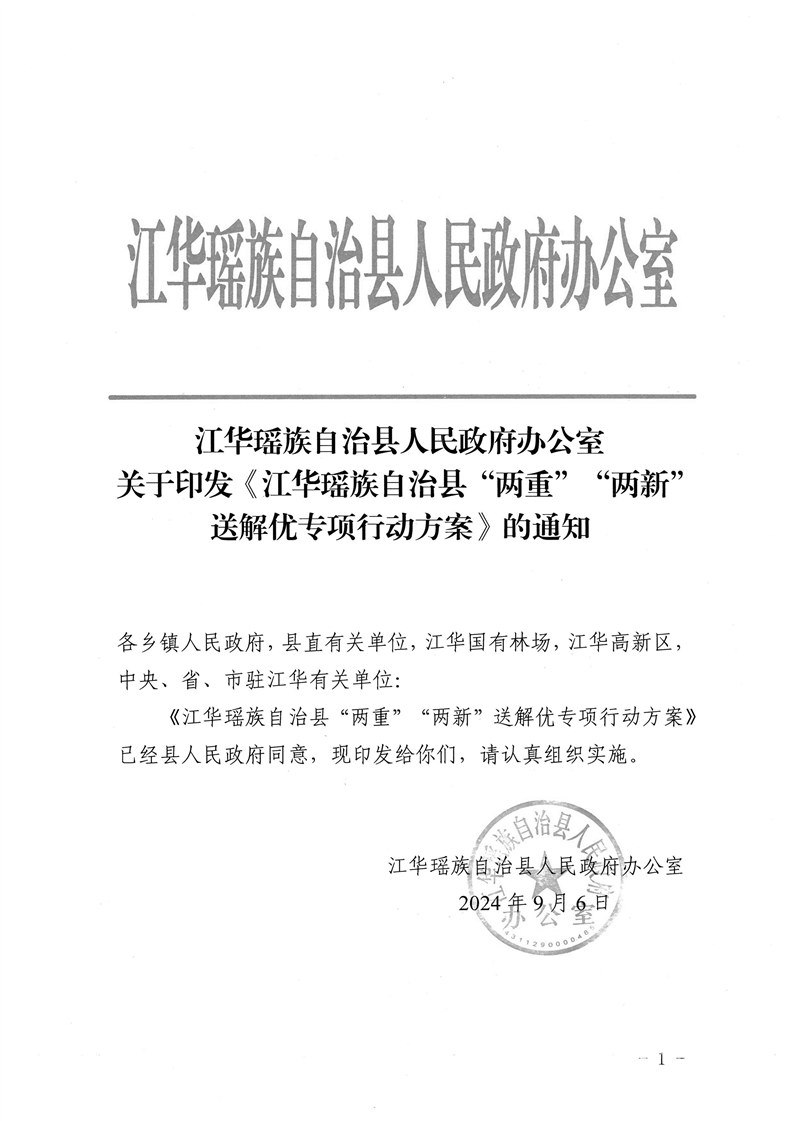 本级政策 | 江华瑶族自治县人民政府办公室关于印发《江华瑶族自治县“两重”“两新”送解优专项行动方案》的通知