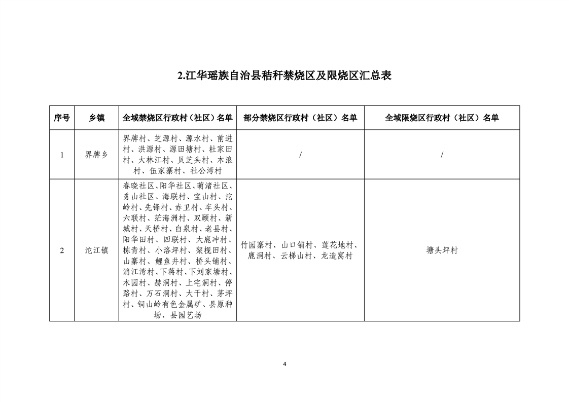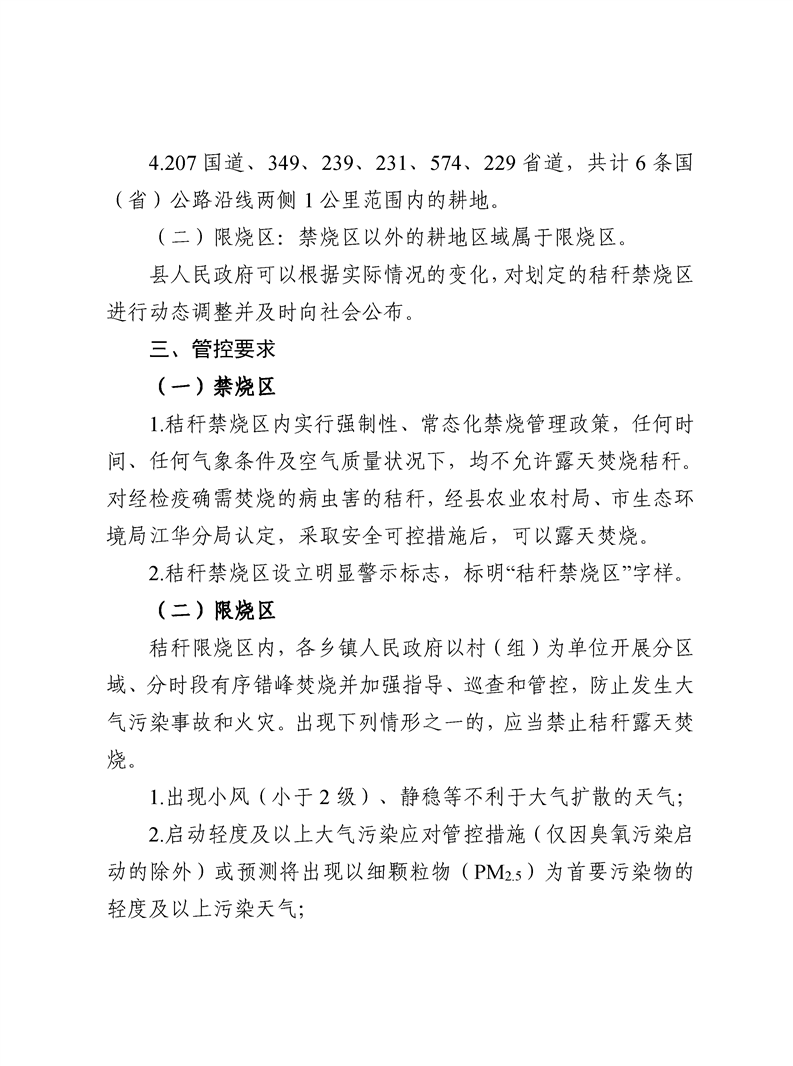 江华瑶族自治县人民政府关于划定秸秆禁烧区及限烧区的通告(征求意见稿)