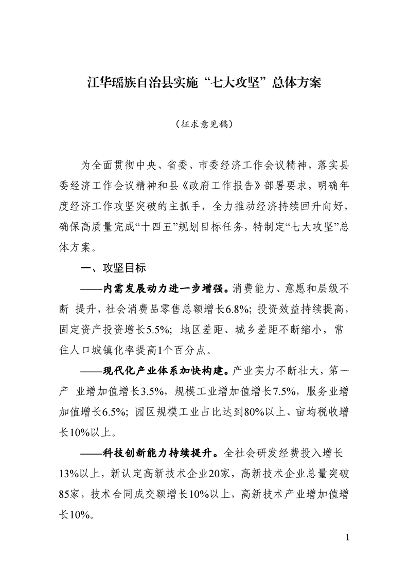 江华瑶族自治县实施“七大攻坚”总体方案(征求意见稿)