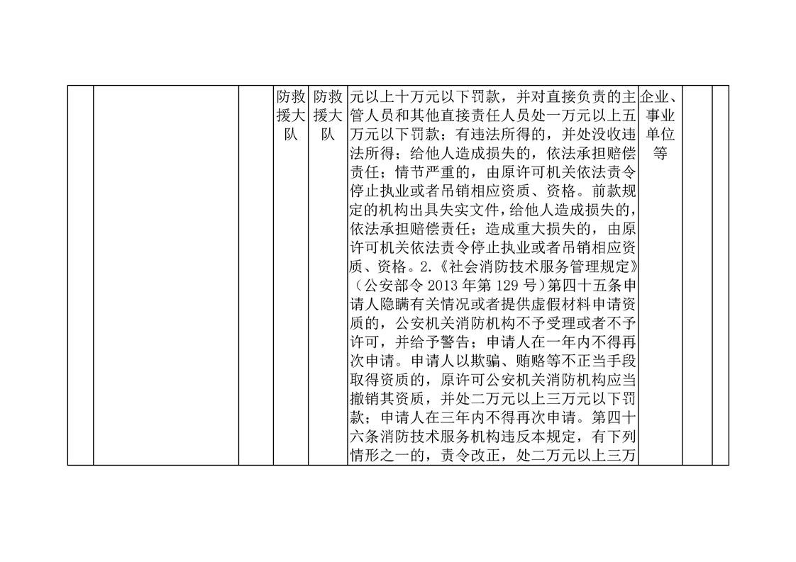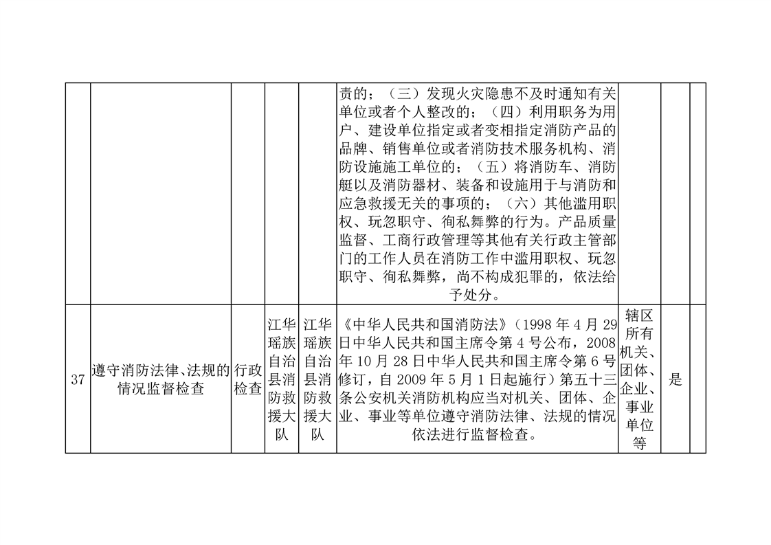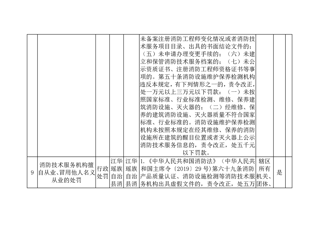 江华瑶族自治县消防救援大队行政执法事项目录