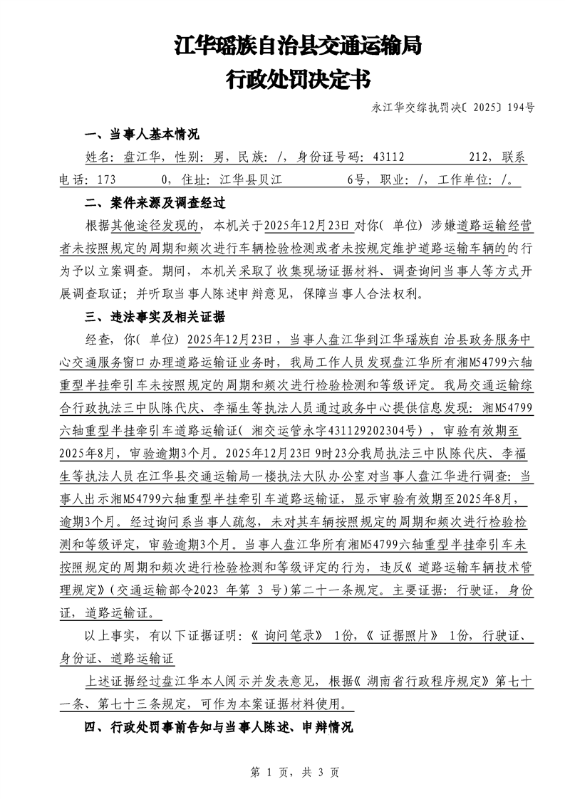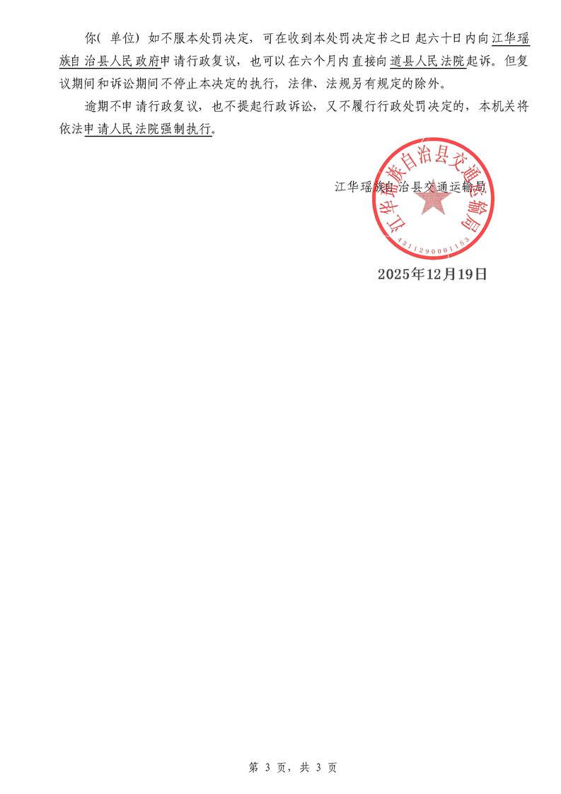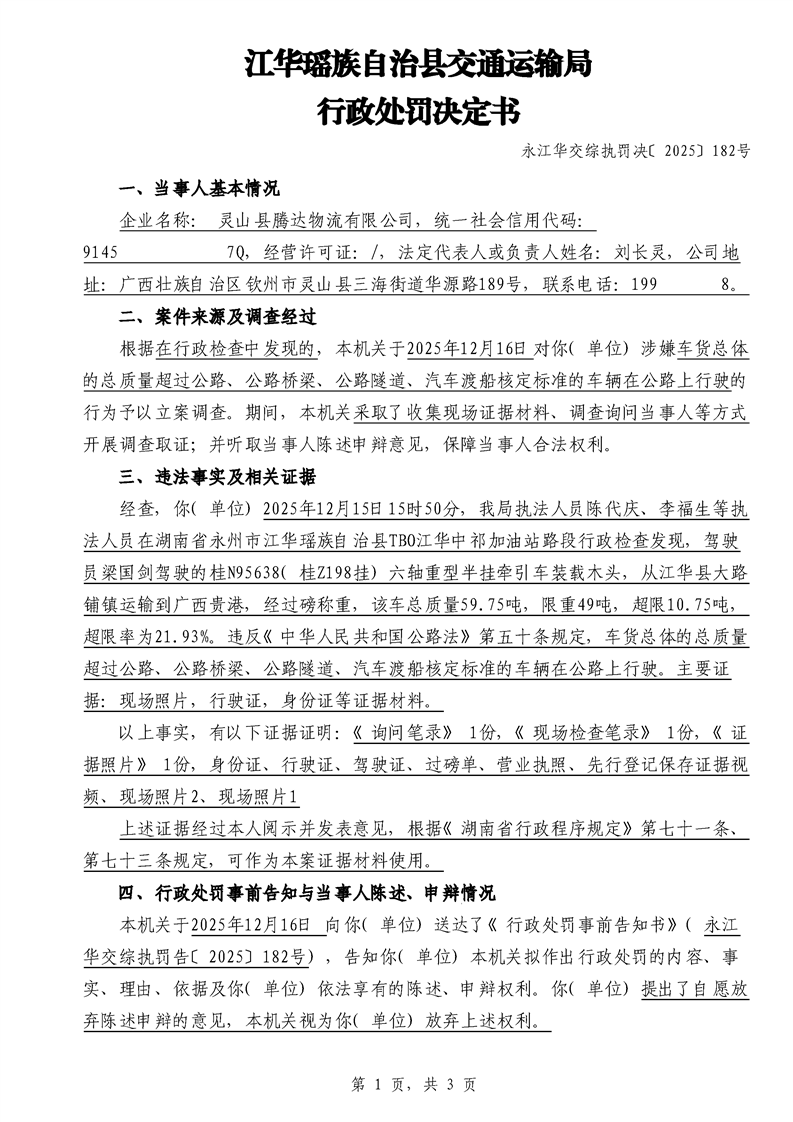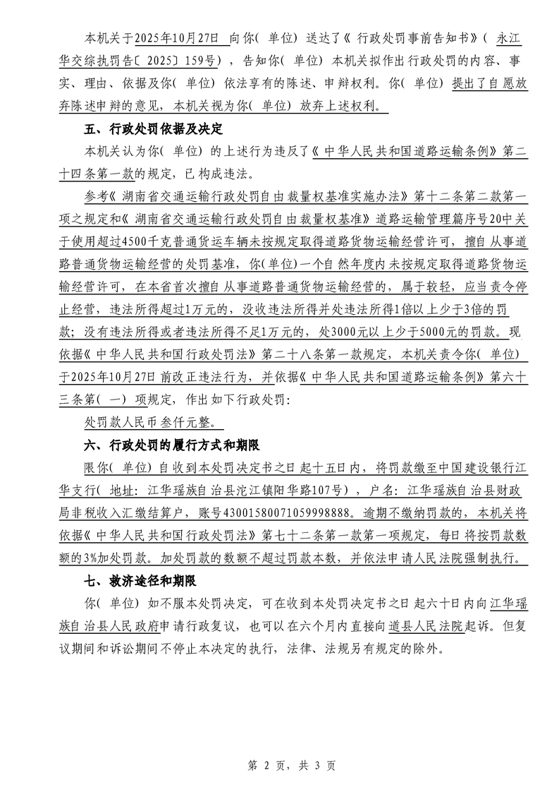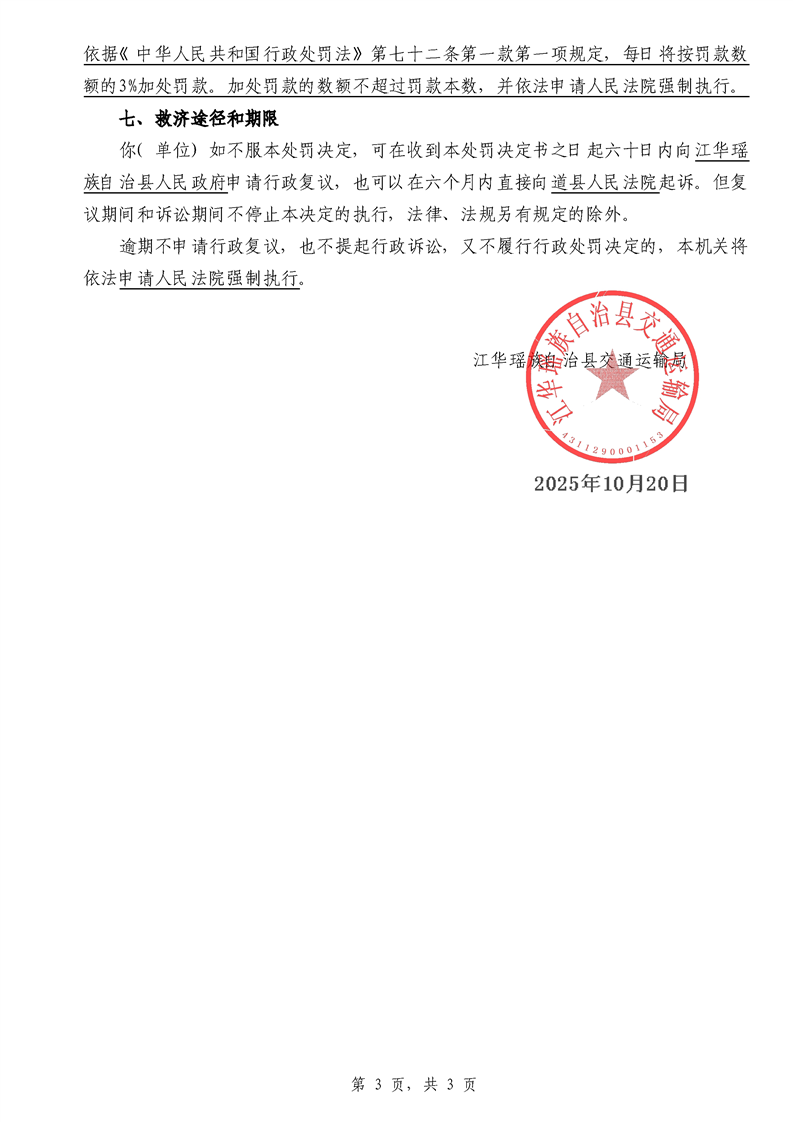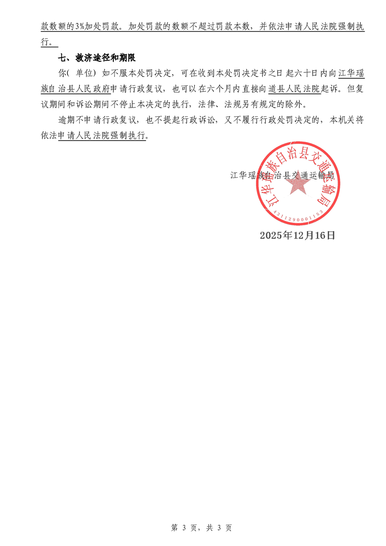 永江华交综执罚决 〔2025〕137-194号