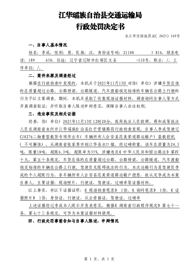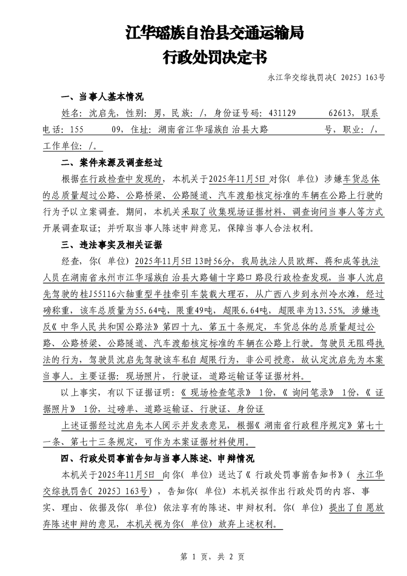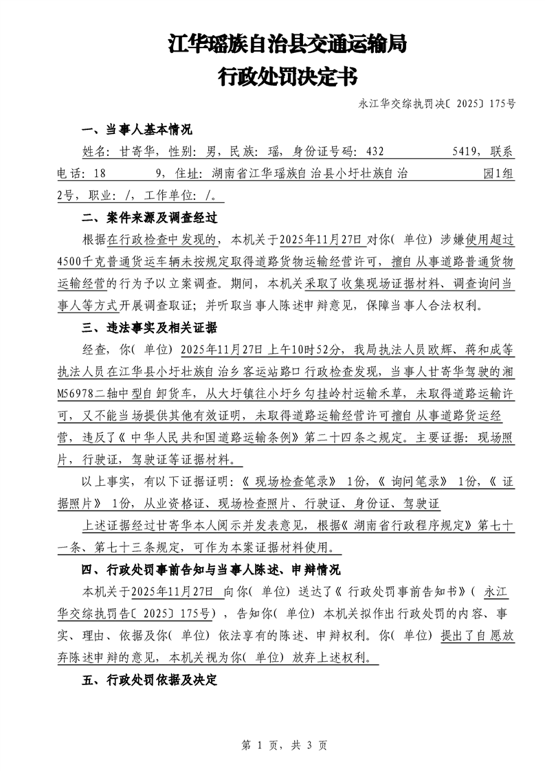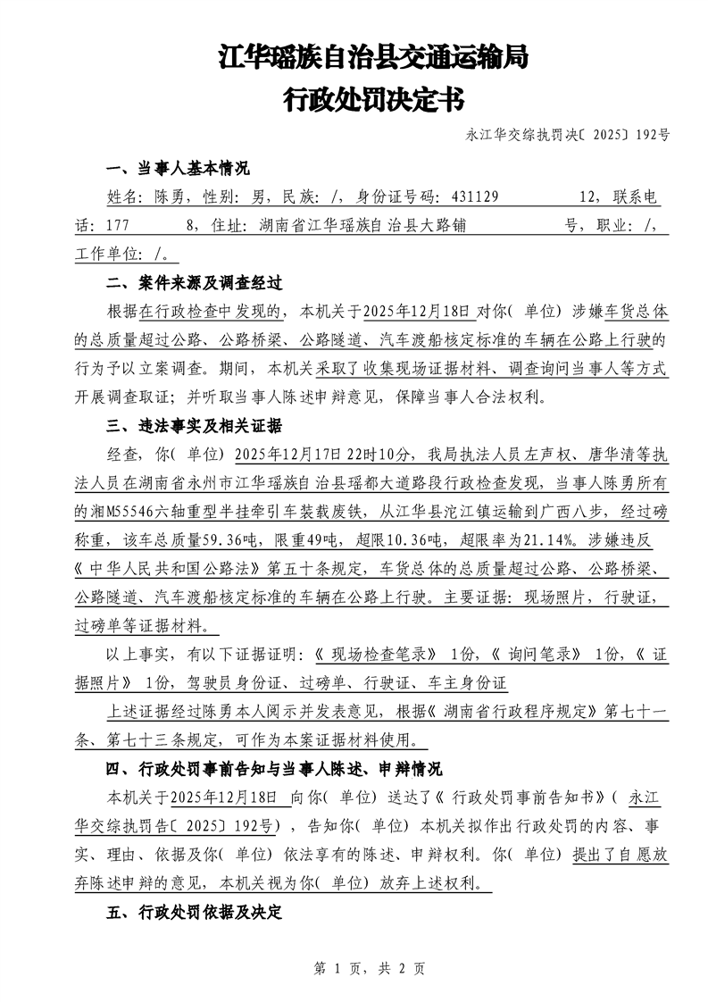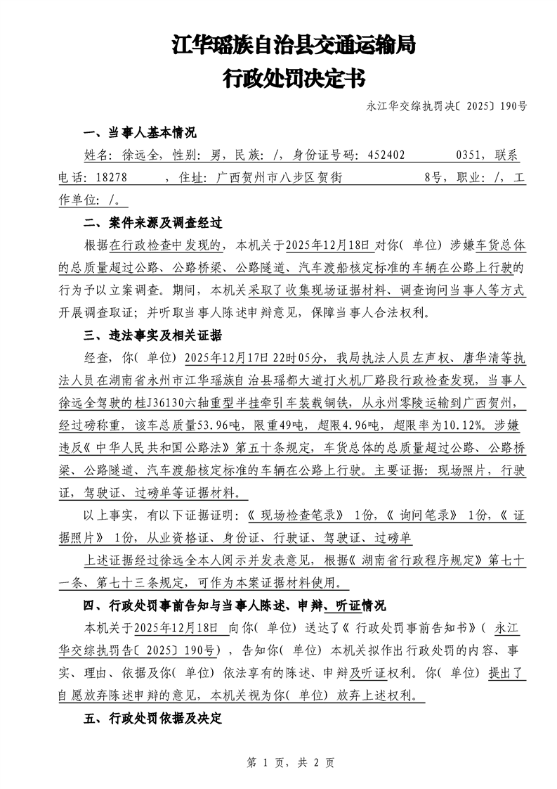 永江华交综执罚决 〔2025〕137-194号
