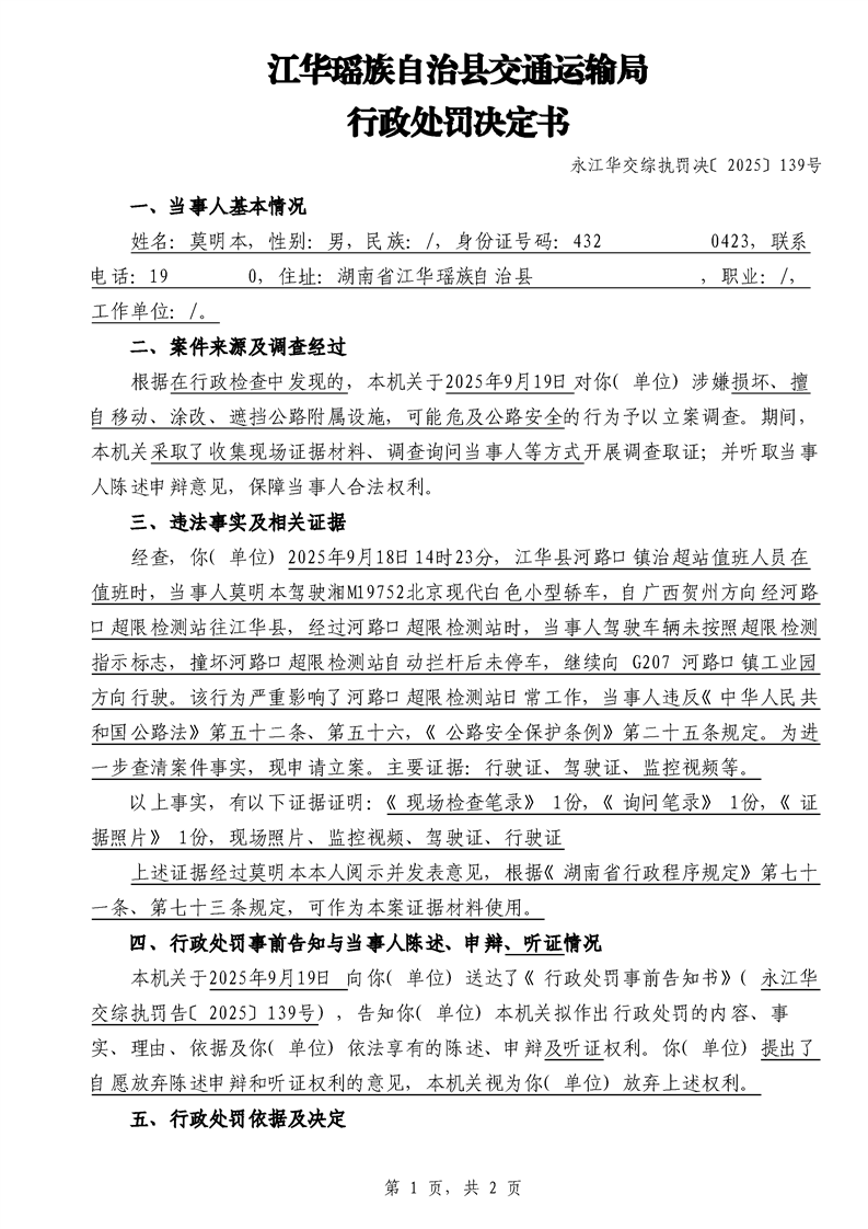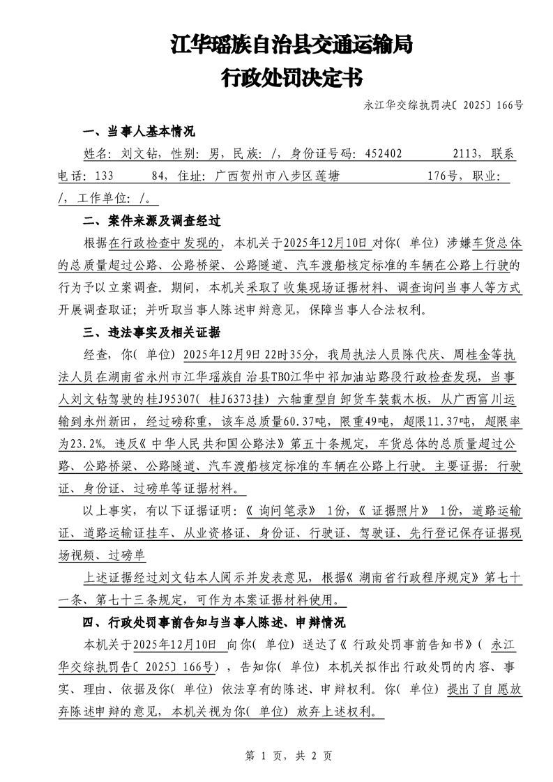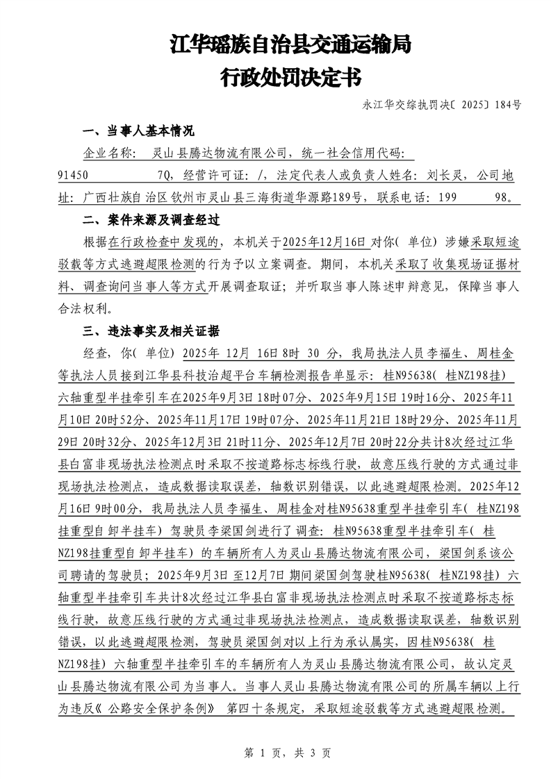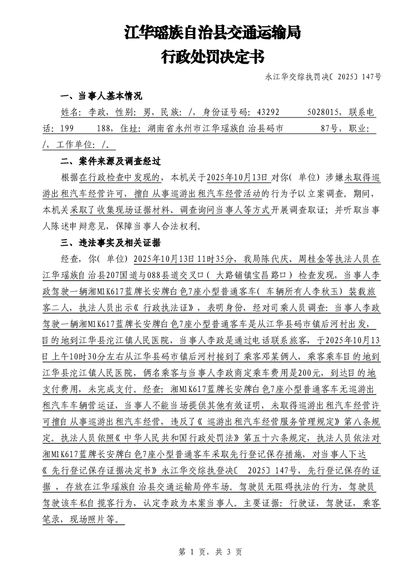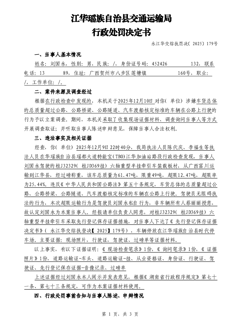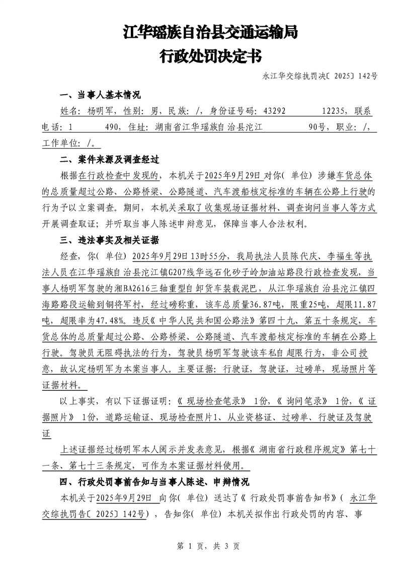 永江华交综执罚决 〔2025〕137-194号