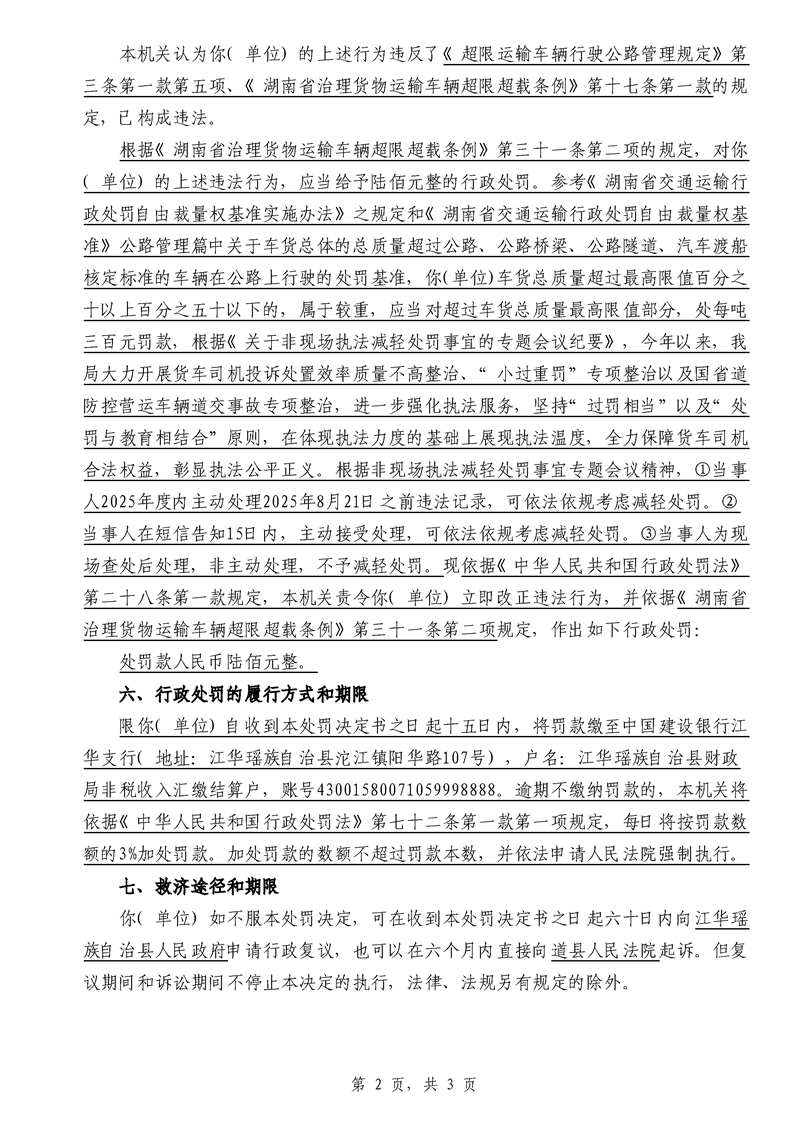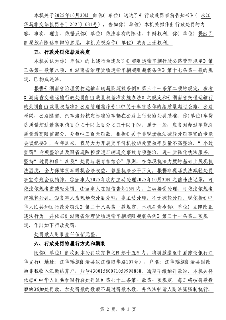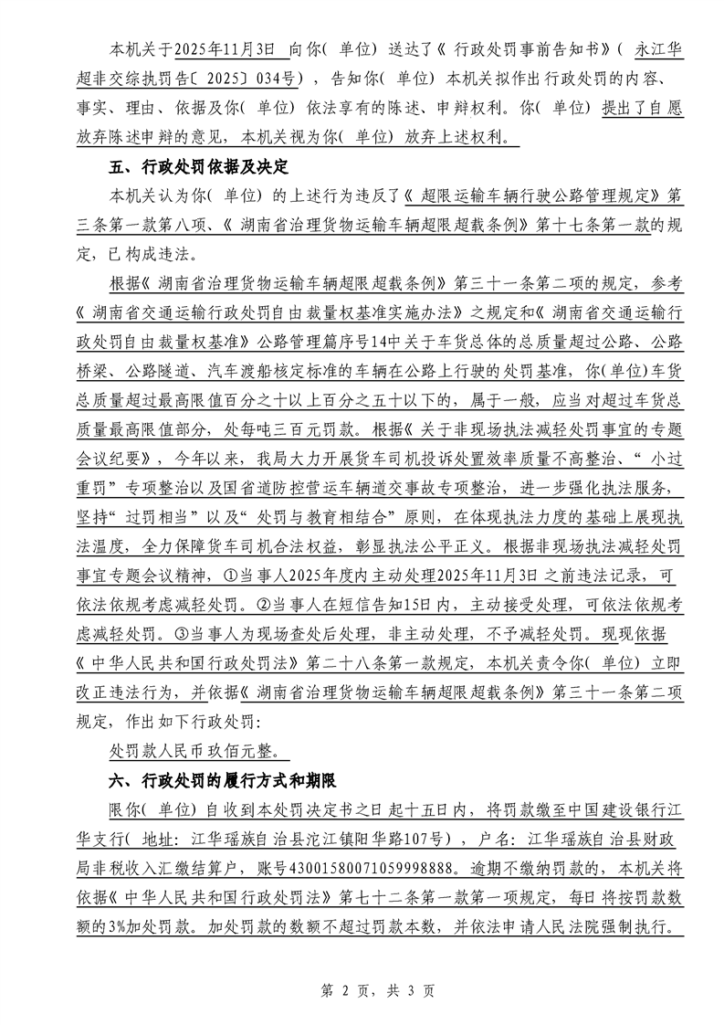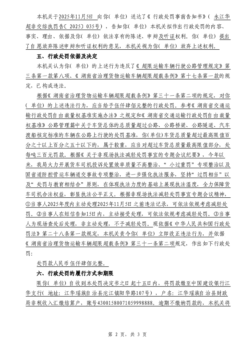 江华超非交综执罚决〔2025〕022号-044号