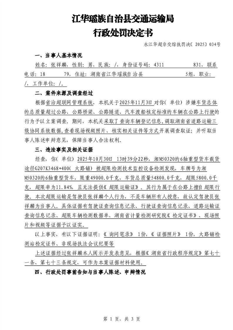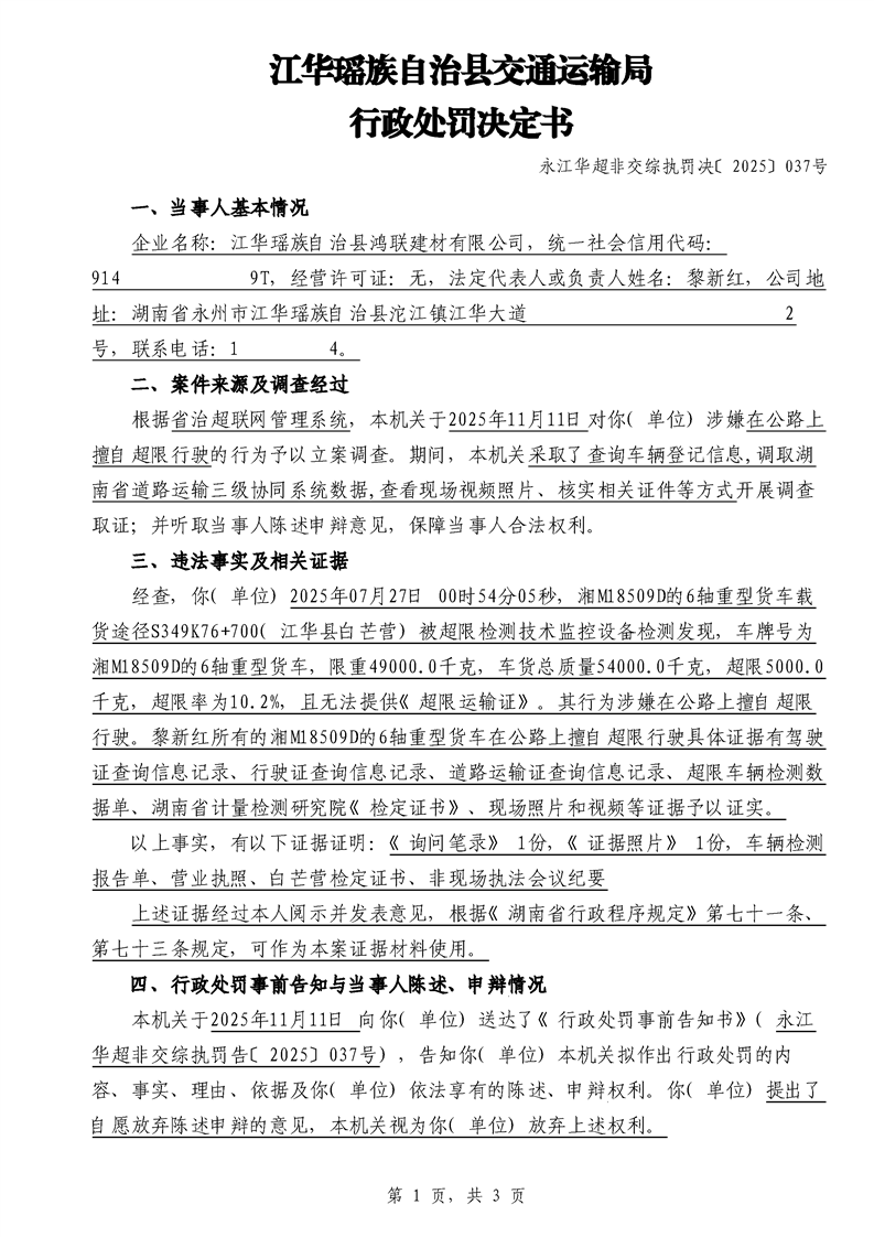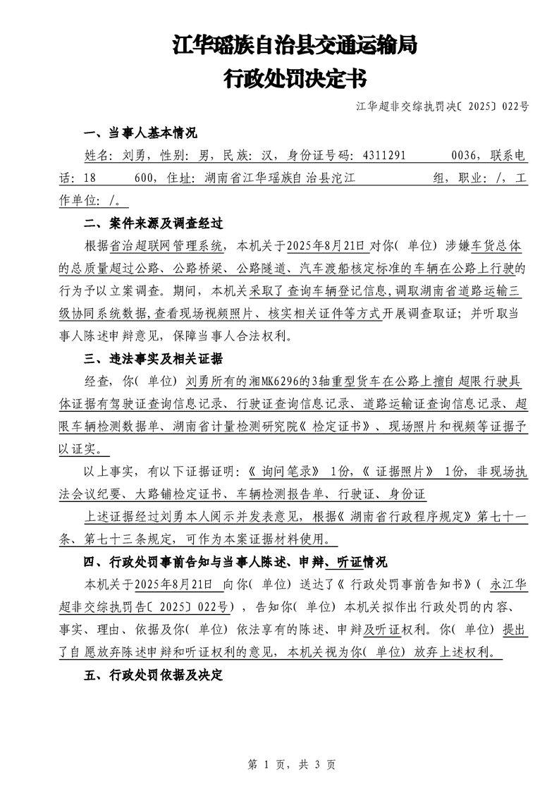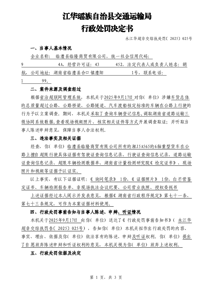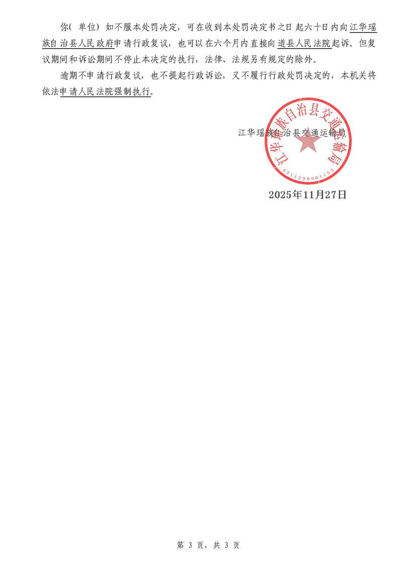 江华超非交综执罚决〔2025〕022号-044号