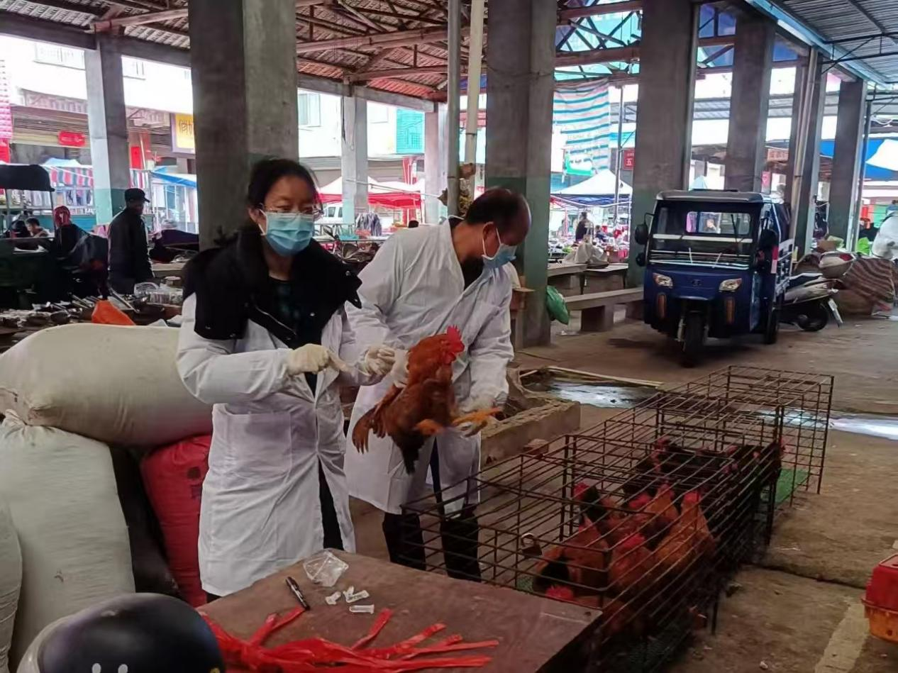 工作人员深入到大圩屠宰场、农贸市场、超市、家禽市场进行采样工作,严格对每一个采样点的环境和禽畜进行细致的检查和采样,以确保动物疫病防控工作能够做到早发现、早报告、早隔离、早治疗,推动畜牧养殖业安全稳步发展。
