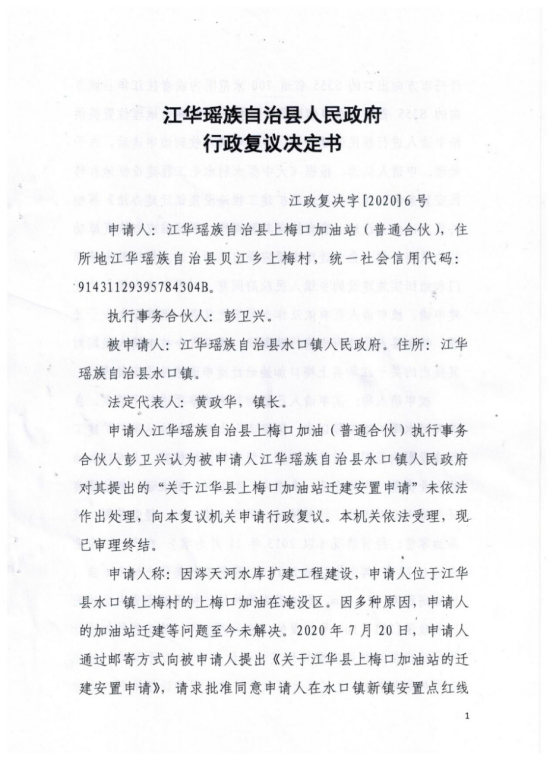 江政复决字[2020]6号