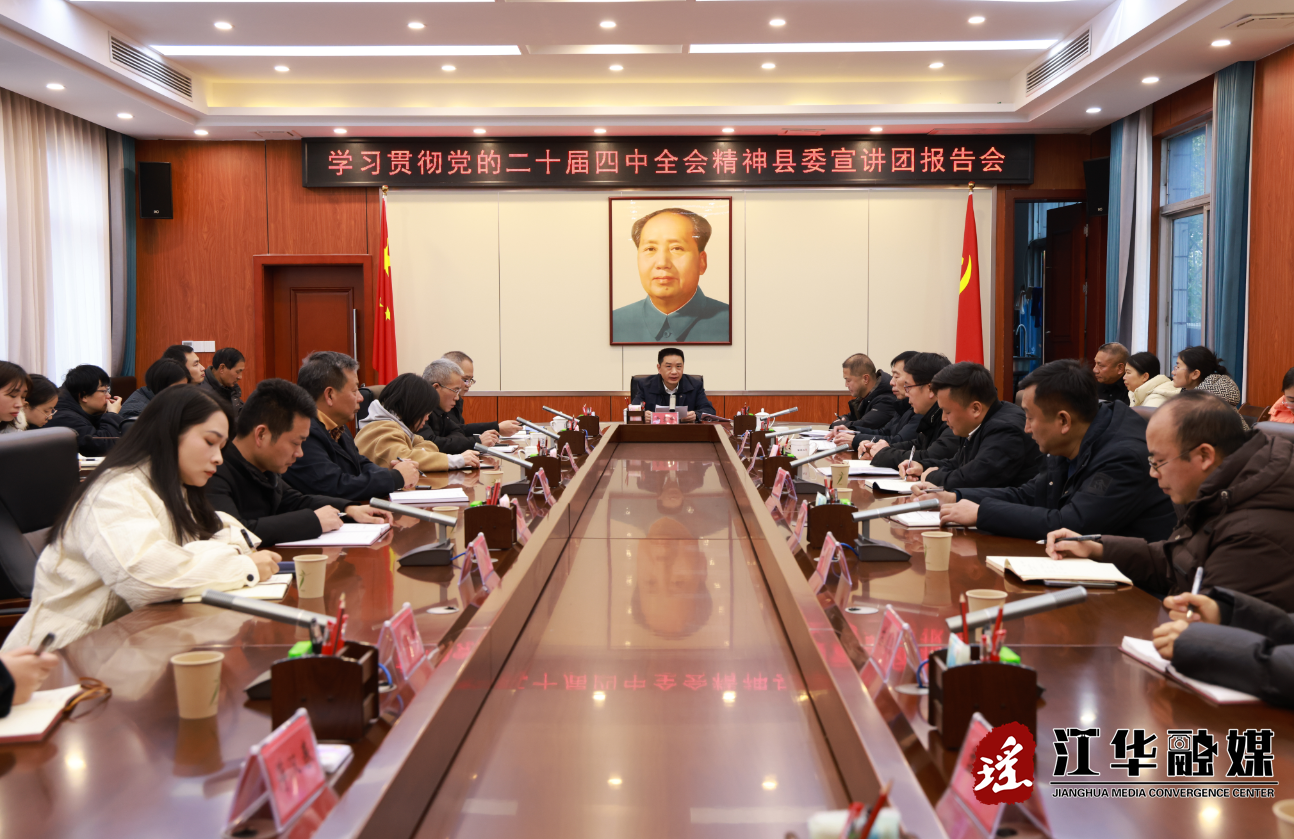 1月23日,江华县委办举行学习贯彻党的二十届四中全会精神宣讲报告会,江华县委书记袁章中以普通党员身份参加并讲话,江华县委常委、县委办公室主任左华生作专题宣讲,江华县委办全体干部职工参加。