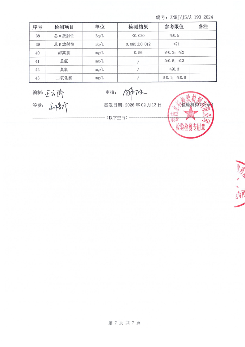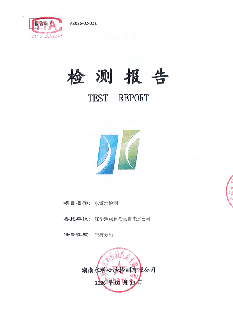 江华瑶族自治县自来水公司2026年2月份水质检测报告(43项)