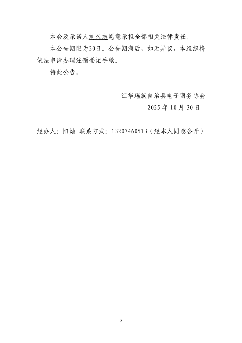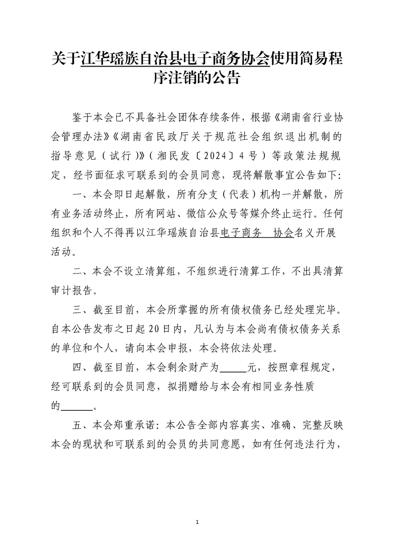 关于江华瑶族自治县电子商务协会使用简易程序注销的公告