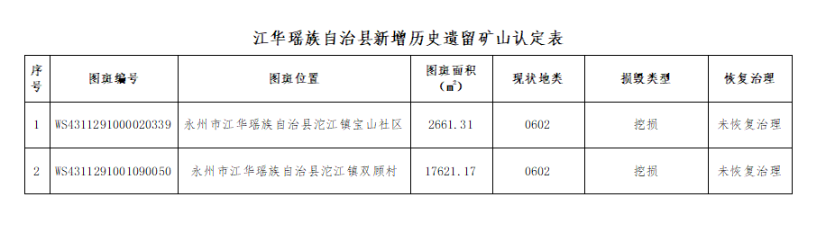 附件:江华瑶族自治县新增历史遗留矿山认定表