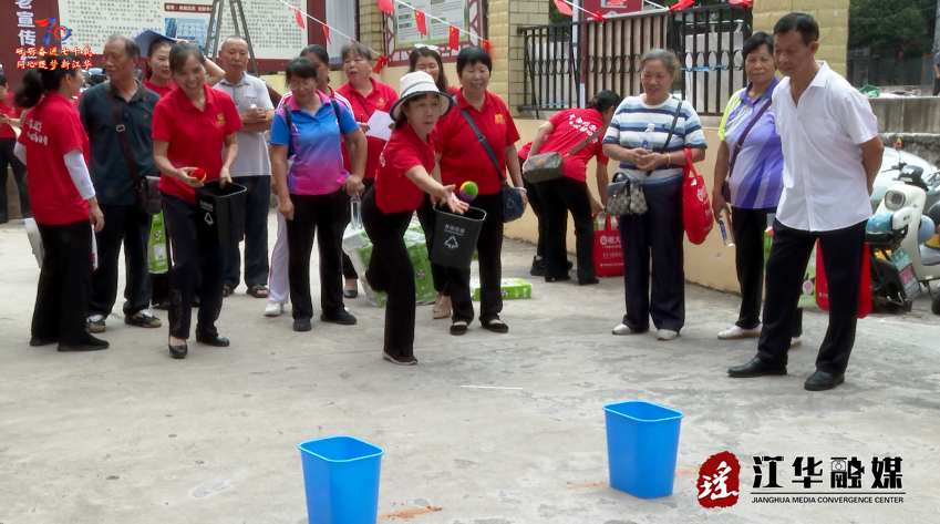 室外扔沙包游戏引得众多居民踊跃参与,一个个沙包被准确投入桶中,将活动氛围推向高潮。