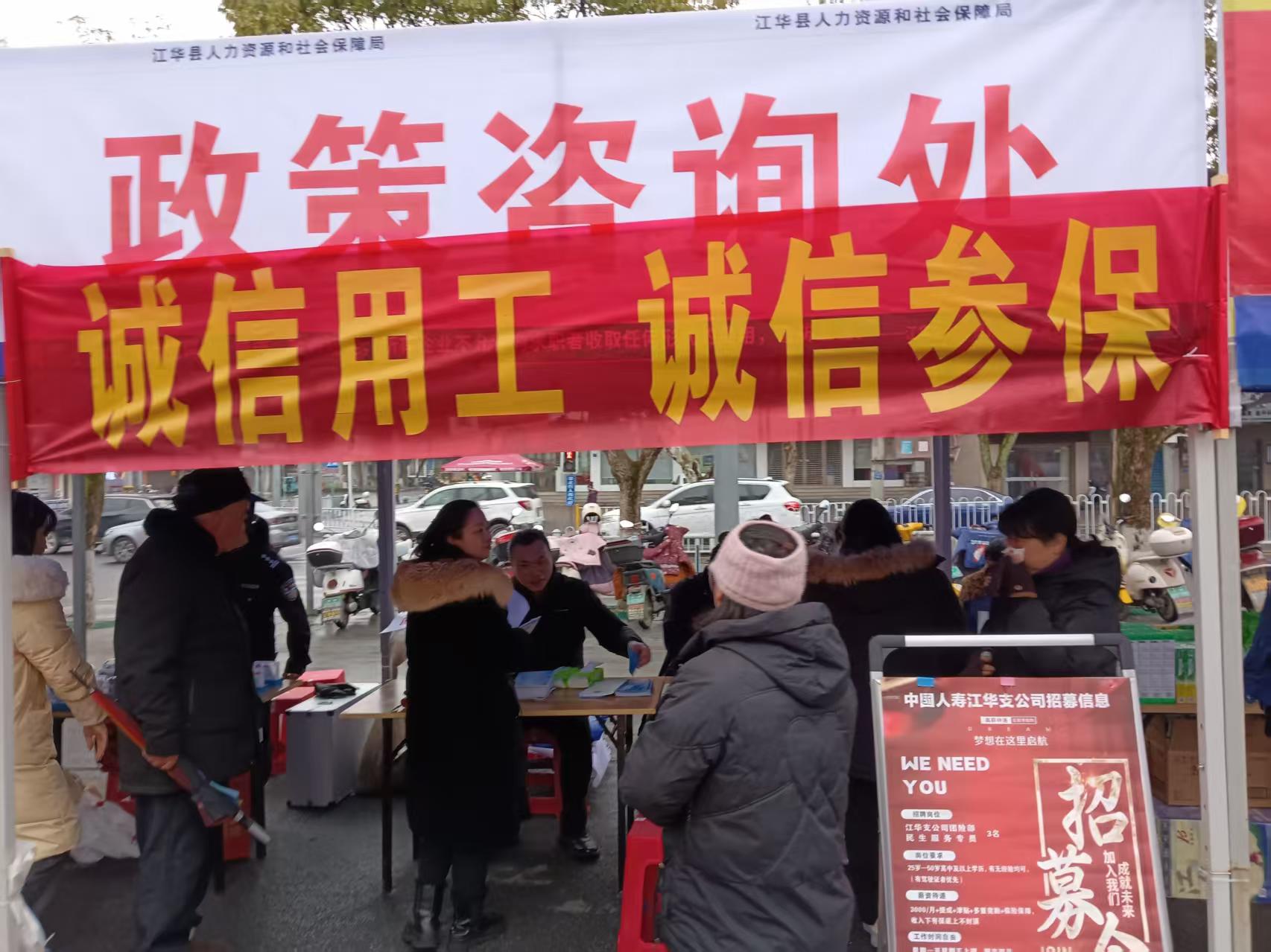 为进一步培育和践行社会主义核心价值观,加速推动社会信用体系建设,2026年2月12日,江华人社局于县体育馆门前组织开展了“诚信用工 诚信参保”诚信宣传活动。