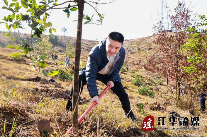 植树过程中,袁章中不时与林业等相关部门负责人交谈,详细询问栽植面积、土壤土质及后期养护要点等,了解全县植树造林工作情况。他强调,植树造林是一项功在当代、利在千秋的崇高事业。全县上下要深入贯彻落实习近平生态文明思想,牢固树立和践行“绿水青山就是金山银山”的理念,抢抓春季造林有利时机,坚持因地制宜、适地适树原则,扎实开展植树造林,健全常态长效管护机制,确保“栽一片、活一片、绿一片”,让每一株新苗都能茁壮成长为守护生态的“生力军”,不断厚植江华“绿色家底”,持续增进群众生态福祉。