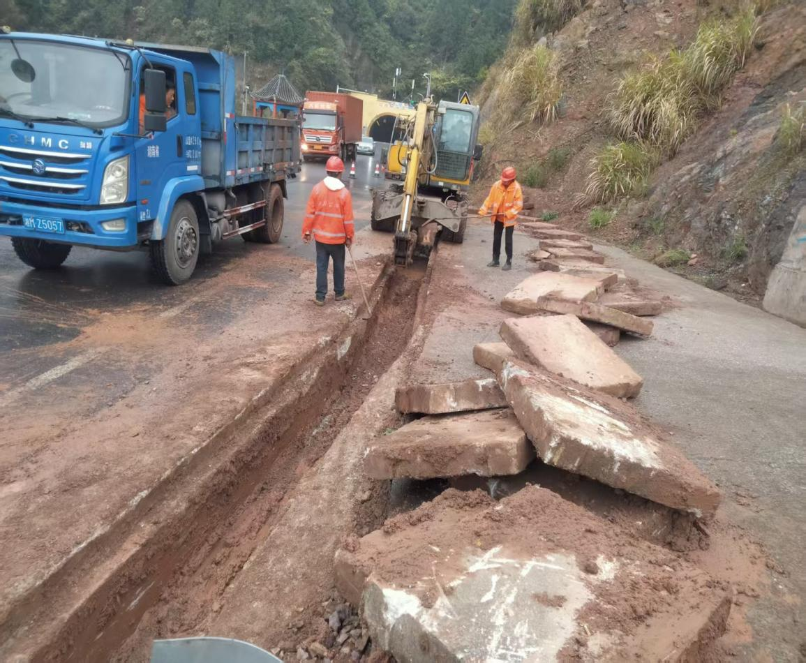 3月20日,勾挂岭隧道出口路段因连日降雨引发水沟严重淤堵,泥土、碎石堆积导致排水系统瘫痪,不仅影响道路排水效率,更给过往车辆通行带来安全隐患。