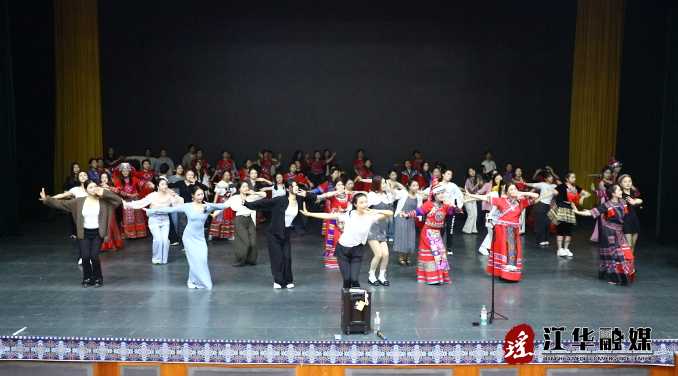此次排练在江华民族文化宫拉开帷幕。在领队的带领下,参演人员齐声高唱助威战歌,经过反复磨合、大家对战歌歌词和助威动作日渐熟练,整体排练节奏紧凑,现场气势愈发昂扬磅礴。排练间隙,全体演员齐声呐喊助威口号,并为即将开赛的 “苏超” 录制祝福视频,传递着永苏两地的深厚情谊。