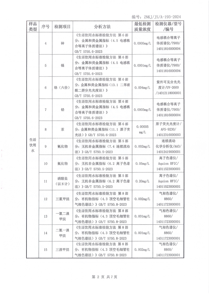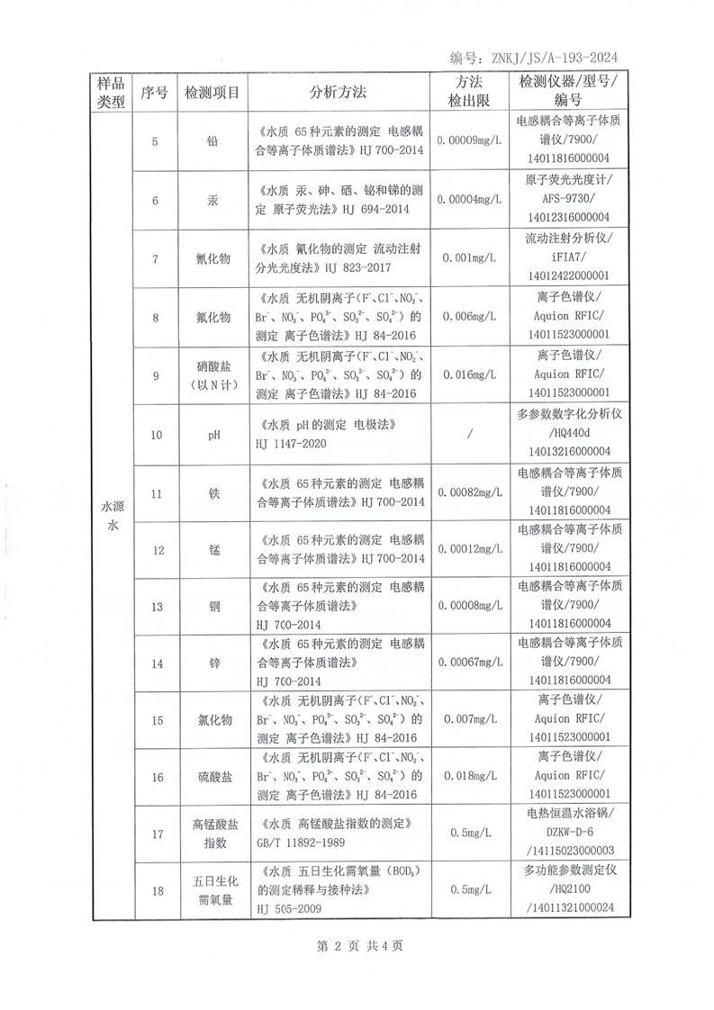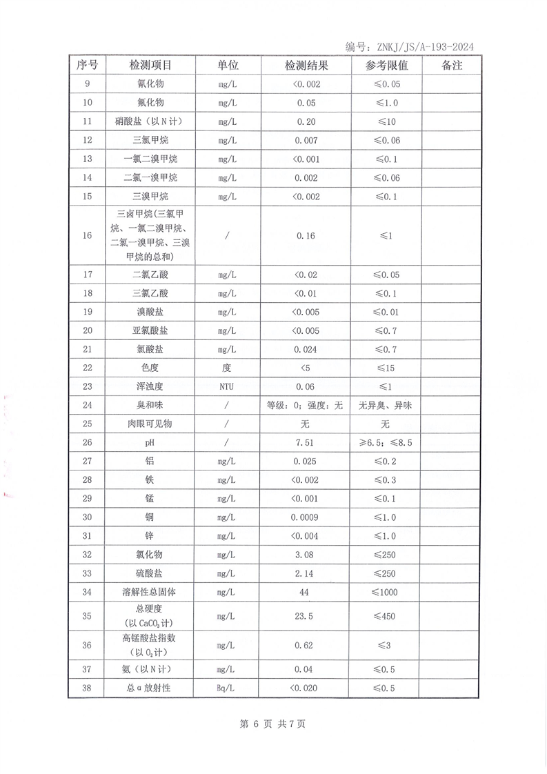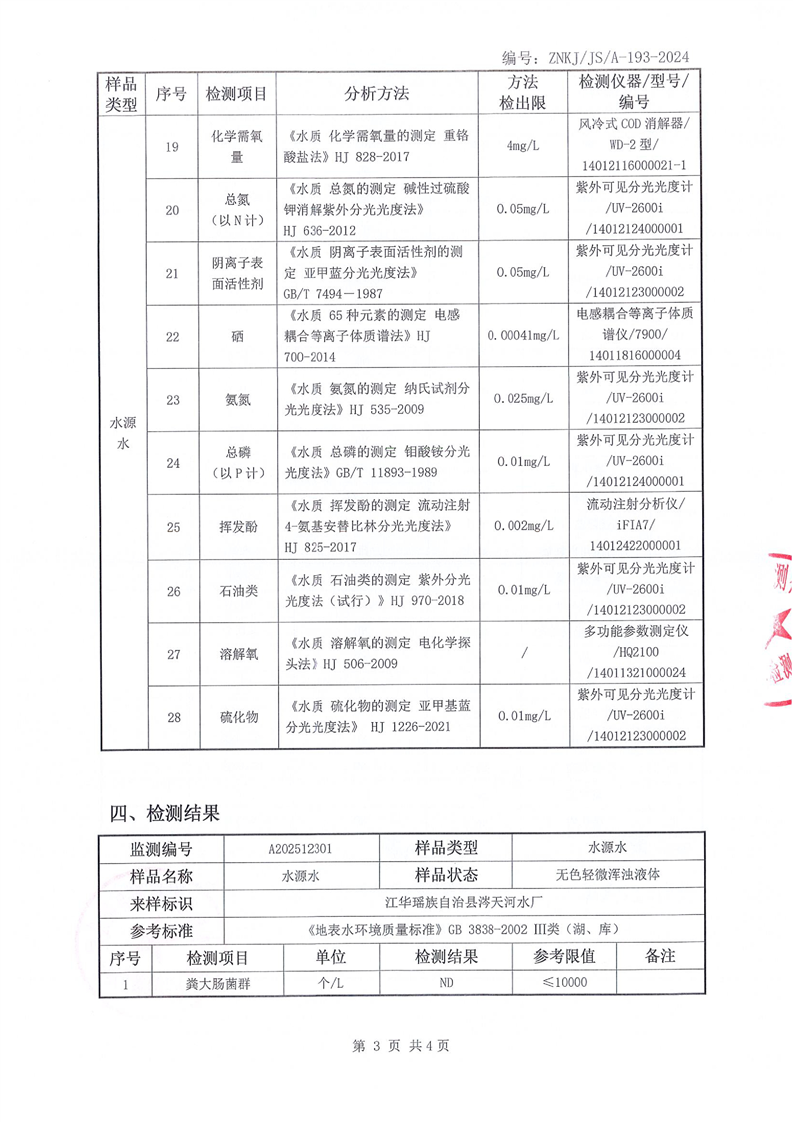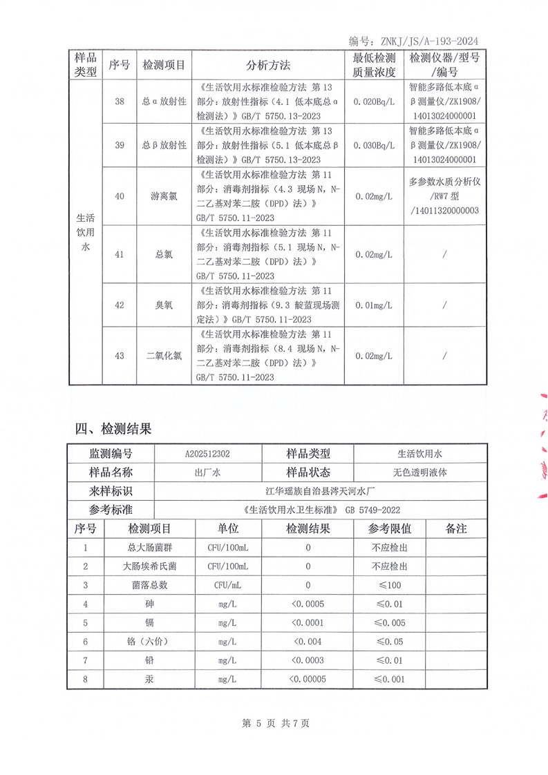 江华瑶族自治县自来水公司2025年12月份水质检测报告(43项)