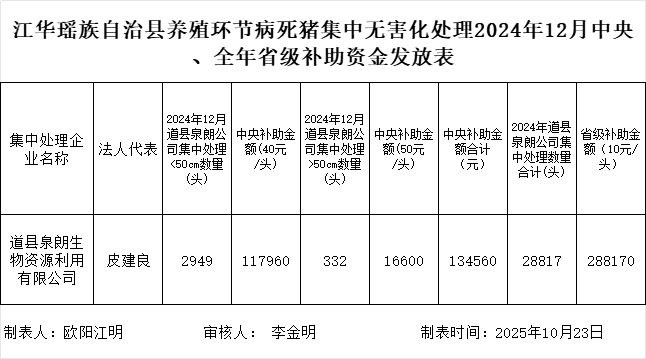 附件: 江华瑶族自治县无害化处理2024年12月中央、全年省级补助资金发放表