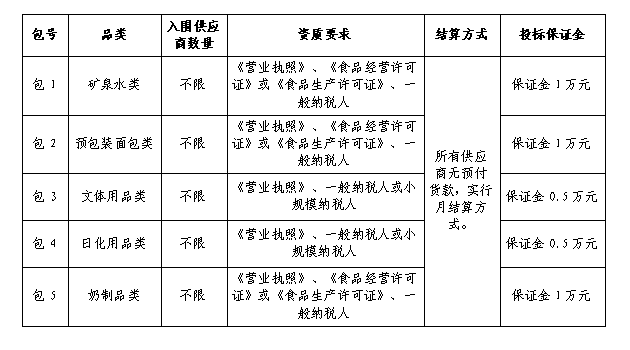 6.采购人从入库商品库中选定供应商后,该供应商在供货前须签订购销合同并缴纳履约保证金(第一包、第二包、第五包各1万元,第三包、第四包各0.5万元),该保证金在本项目服务结束后无息退还。